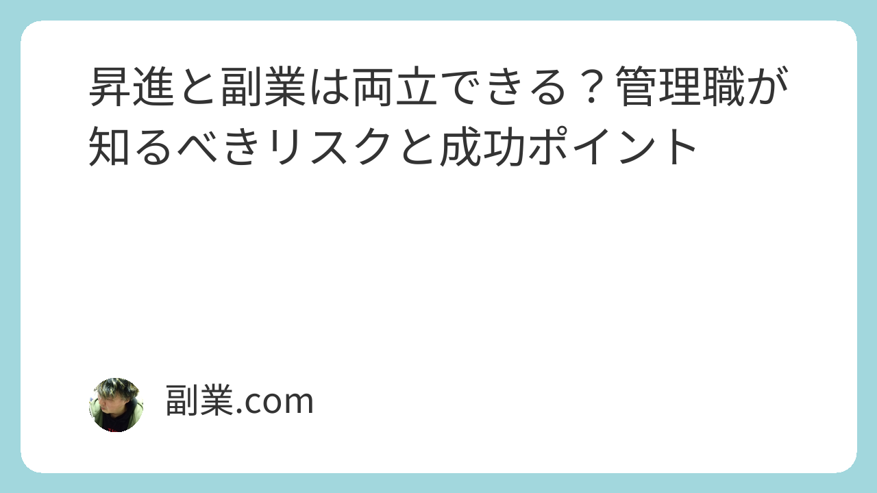 昇進後は業務量が増えやすく、副業時間を確保しづらくなります。本業のパフォーマンスが落ちると評価にも関わるため、無理のない働き方を心がけましょう。