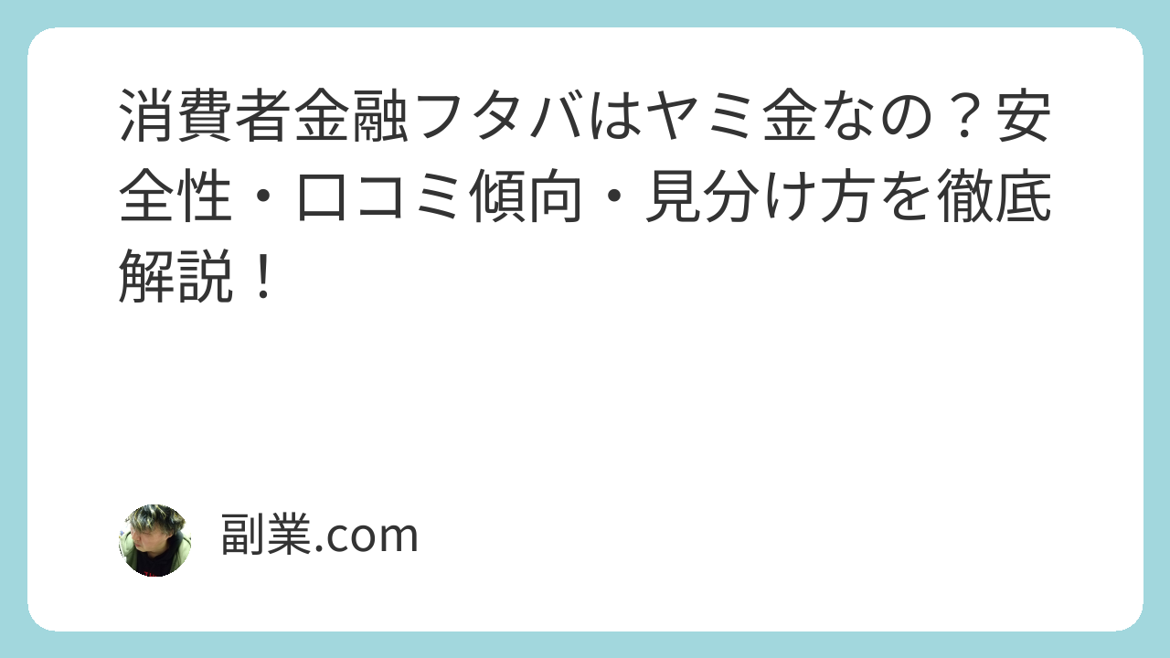 本記事では、消費者金融フタバの安全性・正規業者かどうか・ヤミ金との違い・注意点を中立的に解説します。