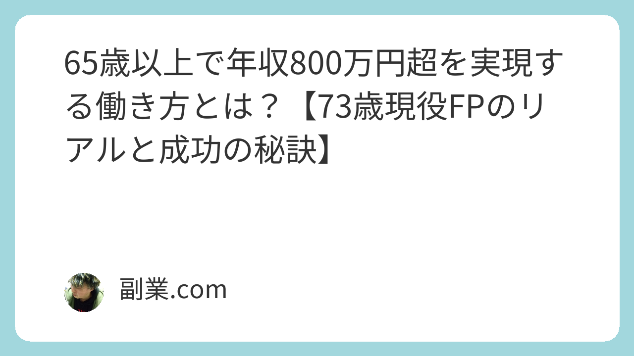 その代表的な例として注目されているのが、73歳で現役のファイナンシャルプランナー(FP)として年収800万円以上を稼ぐ男性の働き方です。