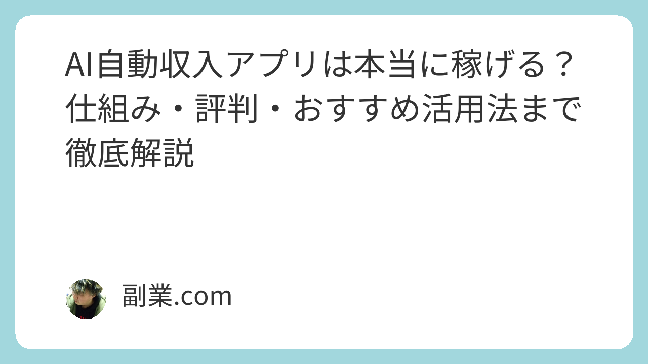 AI自動収入アプリは、スマホ1台でも収益化が狙える新時代の副業ツールです。ただし、「完全放置で勝手に稼げる」という甘い話はほぼ存在しません。仕組みを理解し、少しずつ自動化を進めることで、時間を味方につける収入源へと成長させることができます。