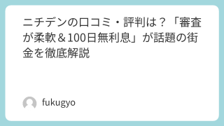 「ニチデンってどんな消費者金融?」「口コミを見ると審査が甘いって本当?」「ヤミ金じゃない?」そんな不安や疑問を持っている方向けに、「ニチデン,口コミ」というキーワードで気になるポイントを、やさしく・ていねいにまとめました。結論から言うとニチ...