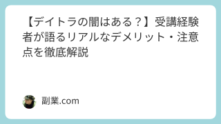 人気オンラインスクール「デイトラ」について検索すると、「デイトラ 炎上」「デイトラ トラブル」などの関連ワードが表示され、不安に感じる人もいるのではないでしょうか。結論から言うと、デイトラが大規模に炎上した事実はありません。ただし、SNS上...