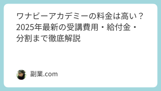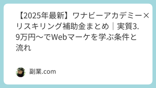 「ワナビーアカデミー 副業」と検索しているあなたは、「スクールで学んだことを使って副業したい」「会社員を続けながら収入を増やしたい」と考えているのではないでしょうか。ワナビーアカデミーのようなWeb・マーケティング系スクールで身につくスキル...