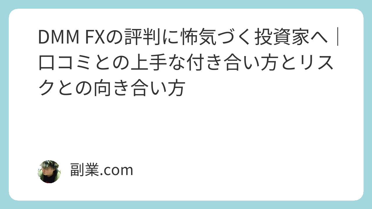 「DMM FX 評判 怖い」と感じている投資家に向けて、口コミとの付き合い方や不安との向き合い方を解説しました。