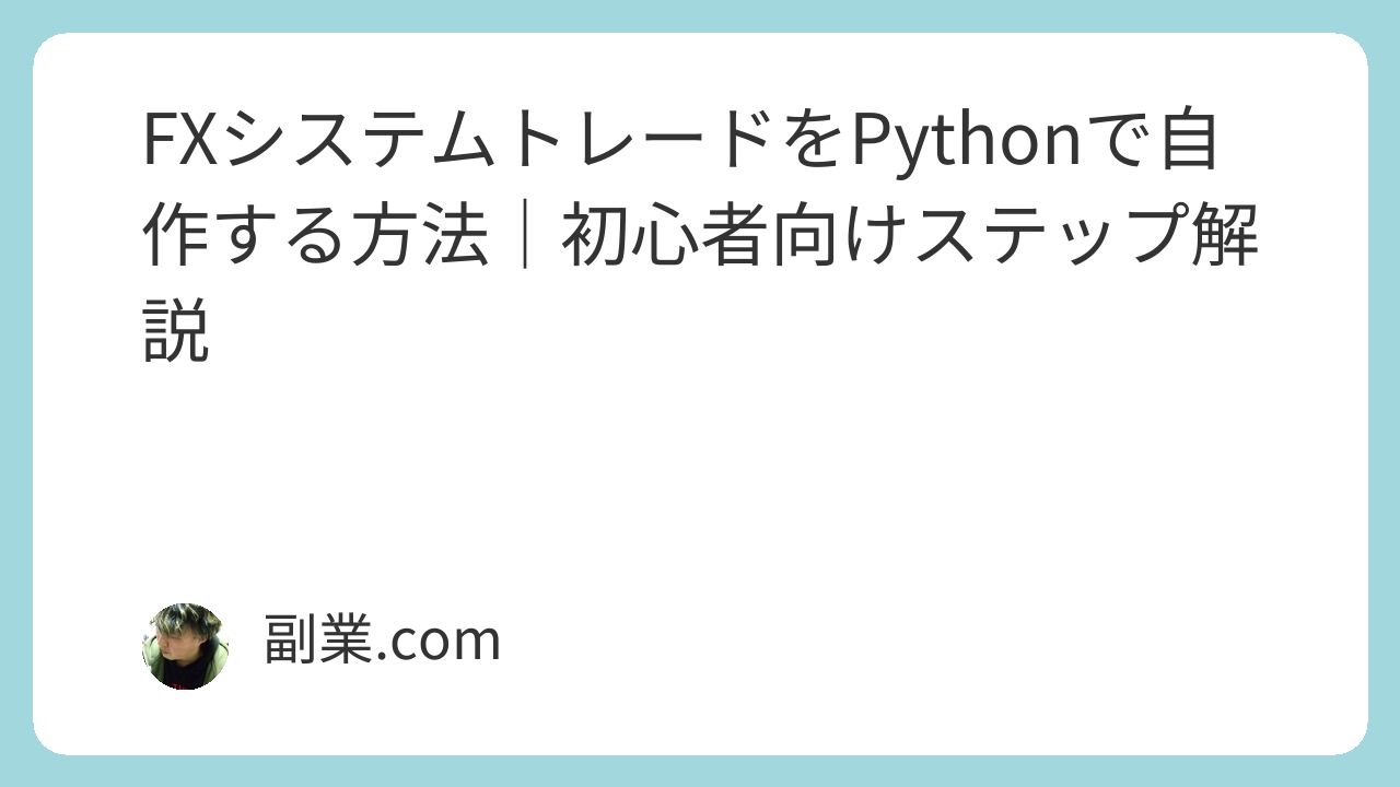 Pythonを使えば、FXの自動売買システム(シストレ)を個人で構築することが可能です。この記事では、初心者でも取り組めるように、
