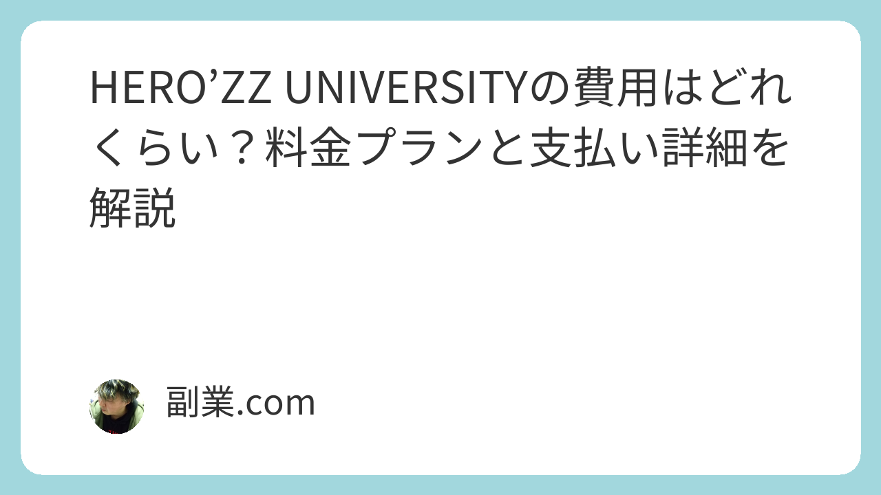 この記事では、HERO’ZZ UNIVERSITYの料金プラン・支払い方法・コストパフォーマンスの観点から、受講を検討する方向けに解説します。