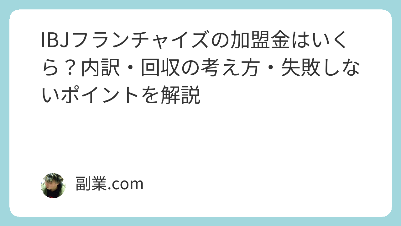 IBJフランチャイズの加盟金はいくら?内訳・回収の考え方・失敗しないポイントを解説