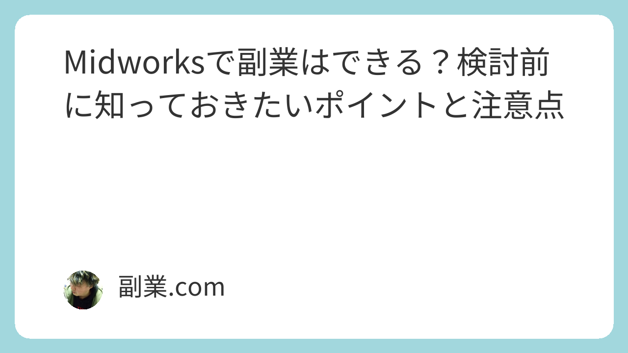 ※具体的な案件内容・条件・副業可否・就業形態などは、必ずMidworks公式サイトや公式窓口・利用規約で最新情報を確認してください。