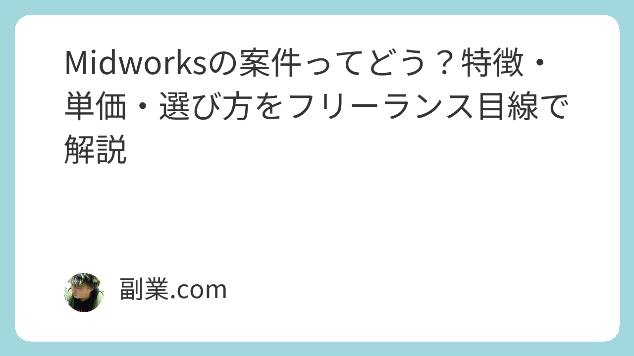 高単価かつ手厚い保障付きの案件を多く扱っているのが特徴です。この記事では、「Midworks×案件」にフォーカスして、