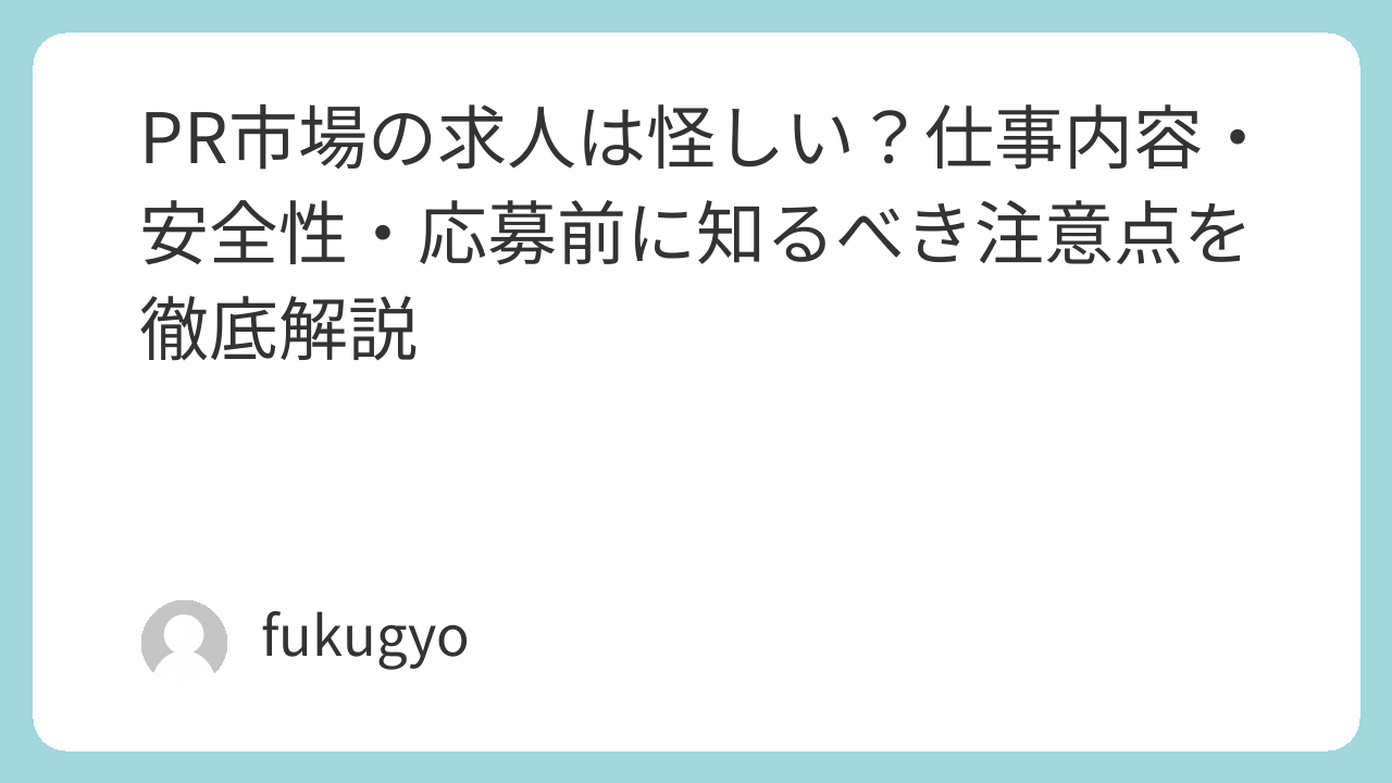 この記事では、PR市場の求人がなぜ怪しいと感じられるのか、実態・安全性・注意点をわかりやすく解説します。