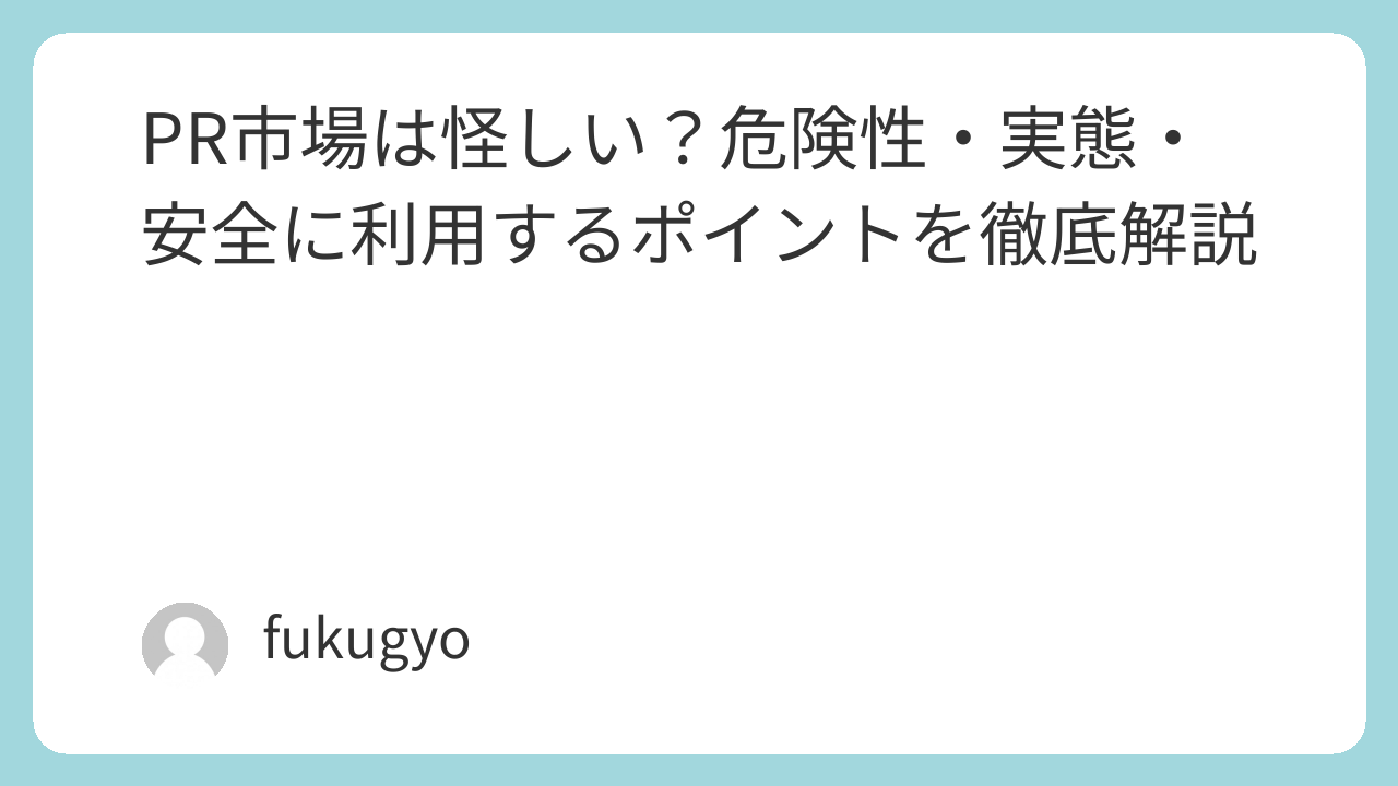 しかしネット検索では「PR市場 怪しい」「危険?」といったキーワードも多く、利用を迷う人が増えています。この記事では、PR市場がなぜ「怪しい」と言われるのか、その理由や実態、利用する際の注意点を分かりやすく解説します。