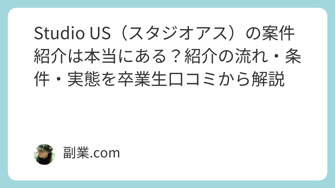 この記事では、Studio USの案件紹介制度について、紹介の流れ・条件・もらえる案件の内容・卒業生のリアルな声をまとめました。受講前の不安を一気に解消していきます。