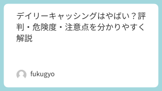 「デイリーキャッシング やばい」「本当に大丈夫?」と不安になって検索していませんか?お金を借りるサービスは仕組みがわかりにくく、怖いイメージもあるので、慎重になるのは当然です。この記事では、デイリーキャッシングの基本情報から、やばいと感じら...