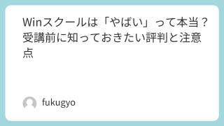 「Winスクール やばい」というキーワードで検索する人は、 料金が高いのでは? 講師の質に差がある? 本当にスキルが身につくの? 就職・転職はできるの?といった“受講前の不安”を抱えているケースが多いです。この記事では、Winスクールの悪い...