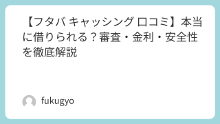 「フタバってどんな消費者金融?」「口コミを見ると審査が甘いって本当?」「怪しくない?」そんな疑問を持つ人向けに、フタバ(株式会社フタバ)のキャッシング口コミを徹底的に整理しました。結論として、フタバは正規の中小消費者金融(街金)であり、安全...