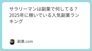サラリーマンの副業が当たり前になりつつある今、「他のサラリーマンは副業で何してるの?」と気になる人が急増しています。実際、副業解禁の流れや物価高によって、会社の給料だけでは生活が不安という声も増えており、個人で稼ぐ力を身につける人が増えてい...