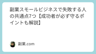 近年、副業としてスモールビジネスを始める人が増えていますが、実は約7割が途中で挫折すると言われています。「時間がない」「思ったより稼げない」「ネタ切れ」「継続できない」など原因は様々。しかし、よく見てみると失敗する人には共通点があります。こ...