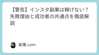 「インスタ副業に挑戦したけど全然稼げない…」そんな悩みを持つ人が急増しています。本記事では、稼げない人の特徴と、逆に収入を伸ばす人の共通点をわかりやすくまとめました。なぜインスタ副業は稼げないと言われるのか?インスタは集客力の高いSNSです...
