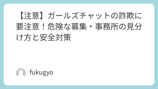 「ガールズチャットの募集って詐欺ある?」「事務所に誘われたけど大丈夫?」「安全なサイトの見分け方を知りたい…」そんな不安を抱えて検索した方に向けて、この記事ではガールズチャット業界に存在する“詐欺・危険な募集”の特徴と、安全に働くためのチェ...