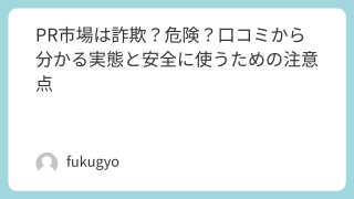 SNSで話題のPR市場ですが、検索すると「PR市場 詐欺」「危険?」という関連ワードが多く表示されます。結論から言うと、PR市場そのものは詐欺ではありません。しかし、周辺で怪しい宣伝や誤解を生む事例が存在するため、注意点を知らずに使うとトラ...